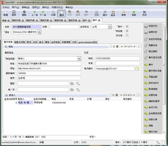 客户管理里面主要管理了业务伙伴和联系人详细信息。