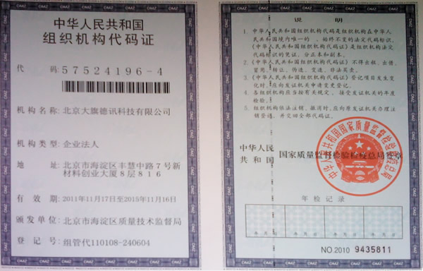 北京大旗组织机构代码证